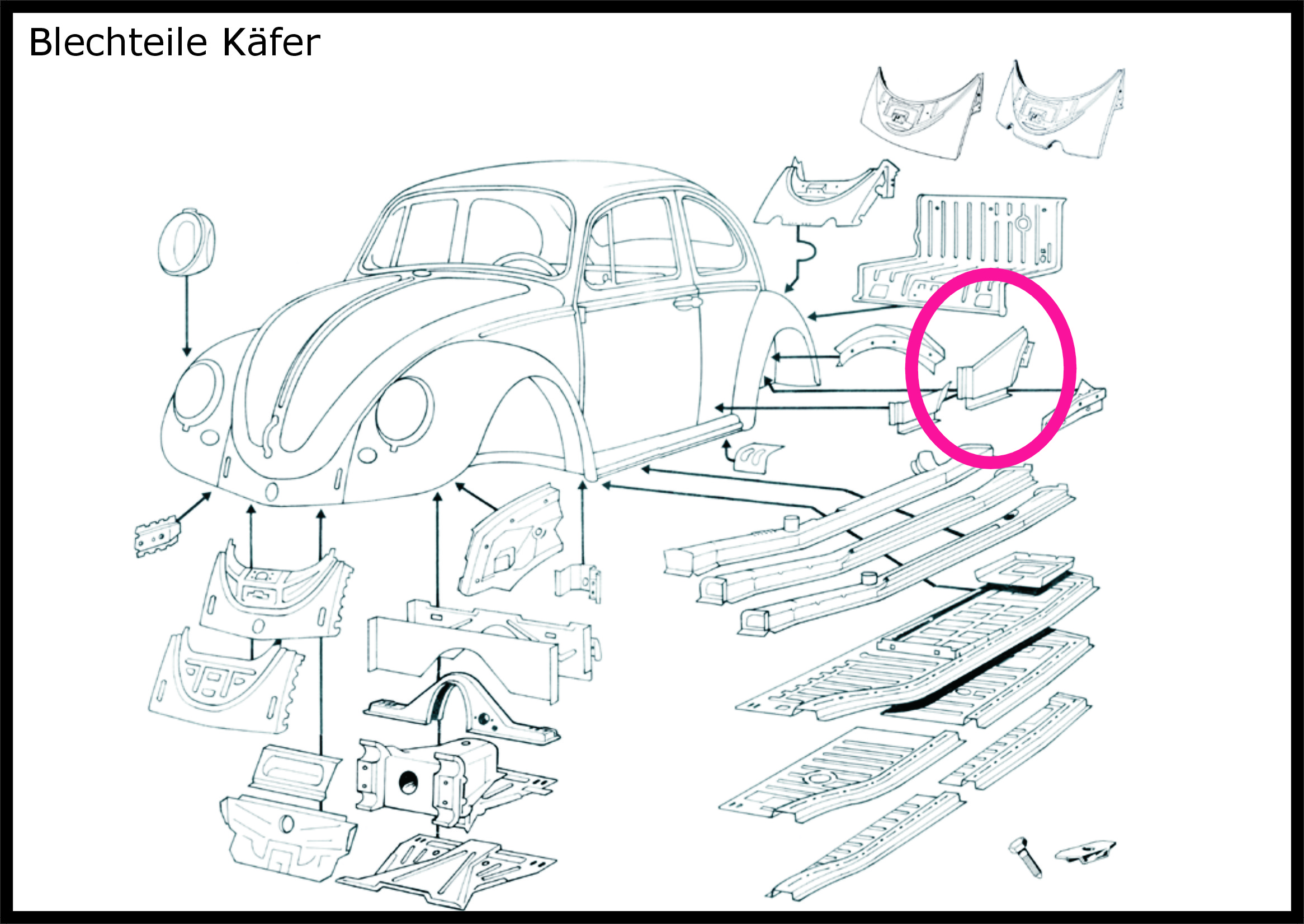 Seitenteil für VW Käfer hinten rechts Beifahrerseite Seitenblech