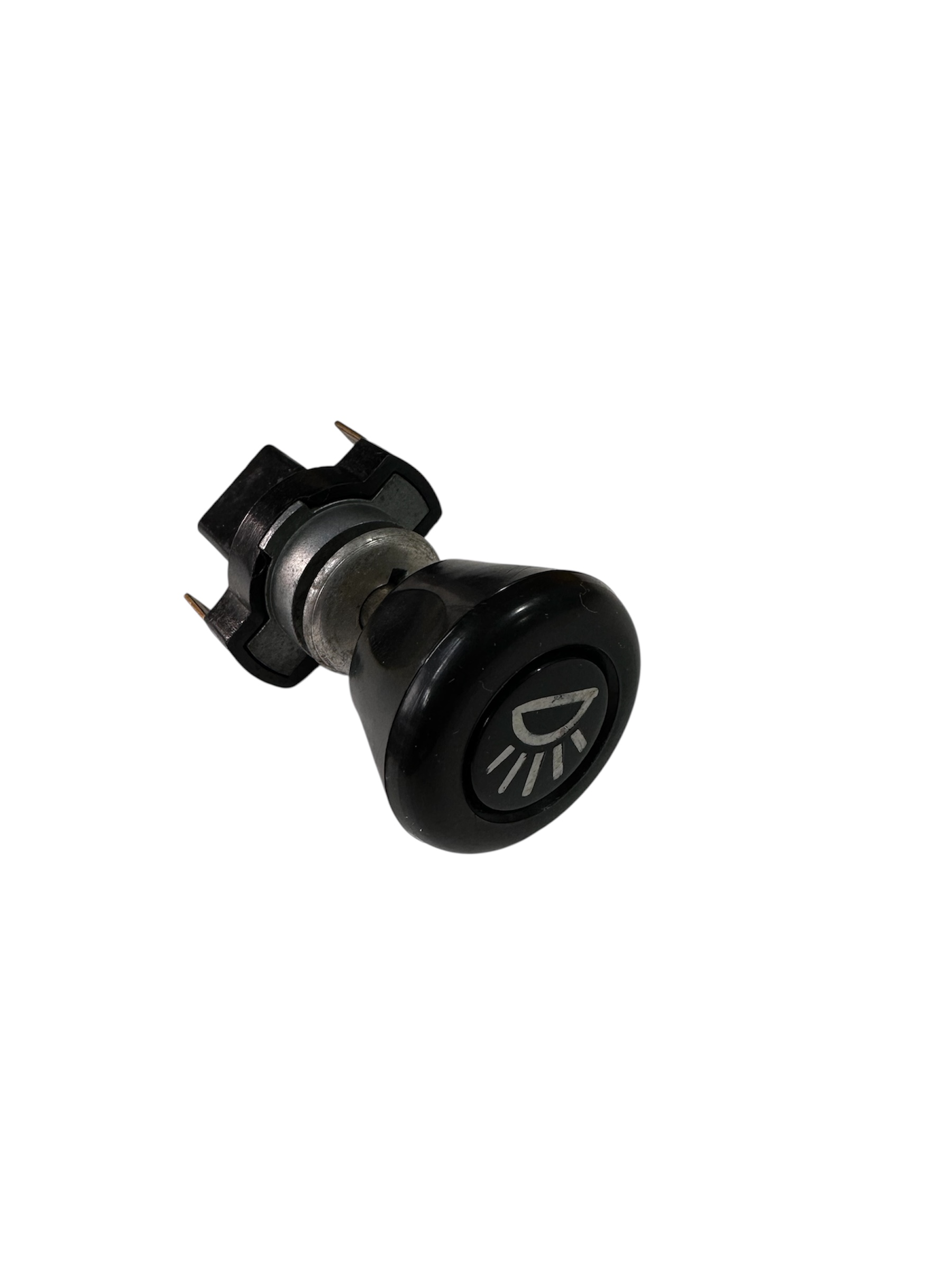 Schwarzer Schubschalter für die Innenbeleuchtung im Armaturenbrett eines VW Bus T2 (Baujahre 1968-1974).